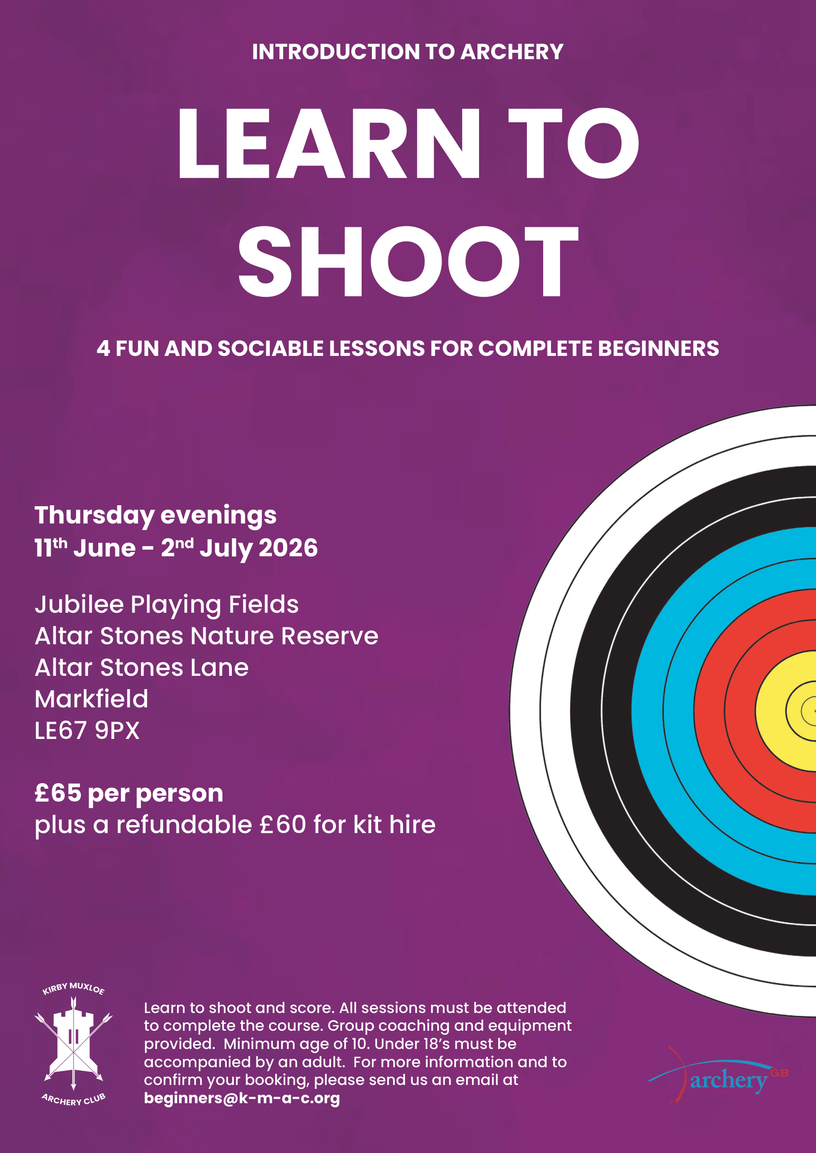 Kirby Muxloe Archery Club (KMAC) is a friendly archery club that consists of members of all ages and abilities, and we are always happy to welcome new members, whether you’re looking for a new club or thinking of doing a beginner’s course!